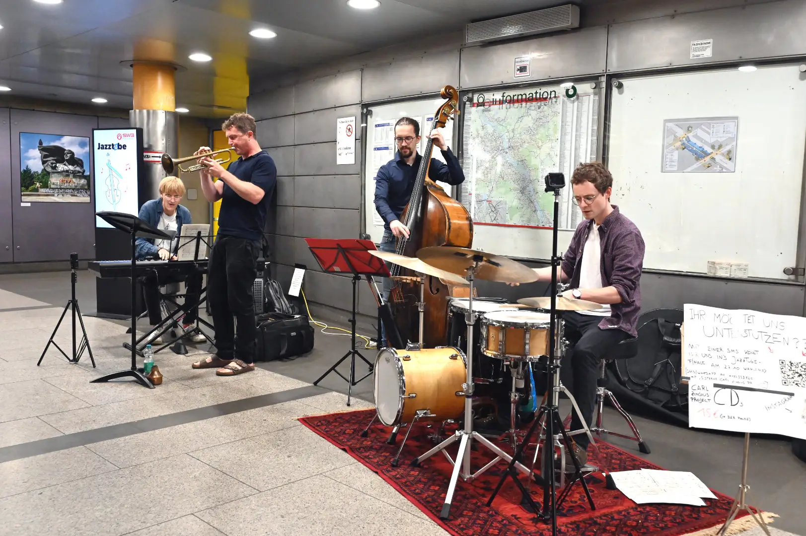 Fotogalerie der Band Carl Zinsius Project – The Music of Carla Bley  bei der Jazztube Bonn 2025 an der Haltestelle Heussallee / Museumsmeile – Ausgang Haus der Geschichte am Freitag, 05. September 2025.
